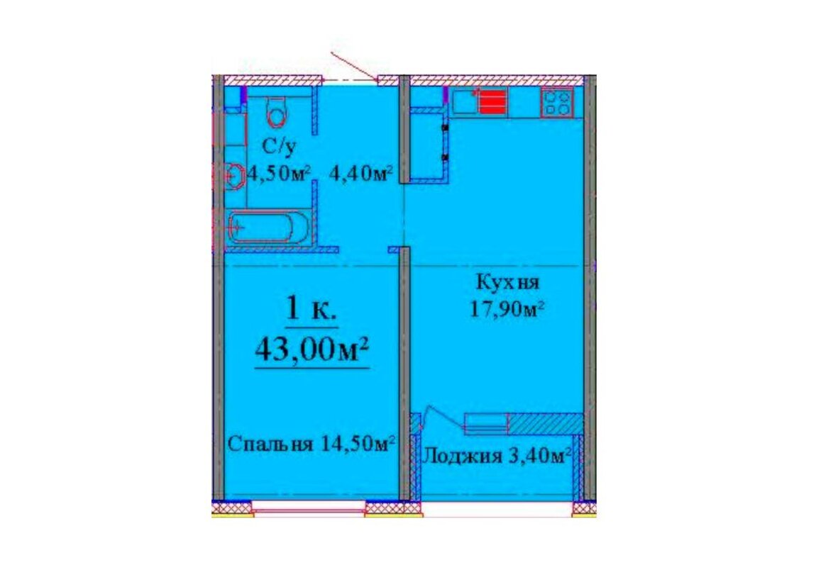 Общая площадь43 м²