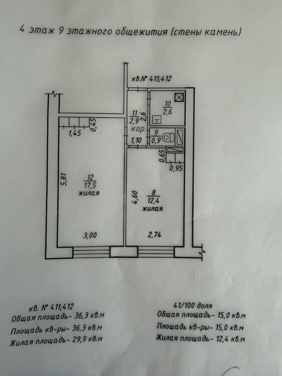 Состояние квартирытребует косметического ремонта