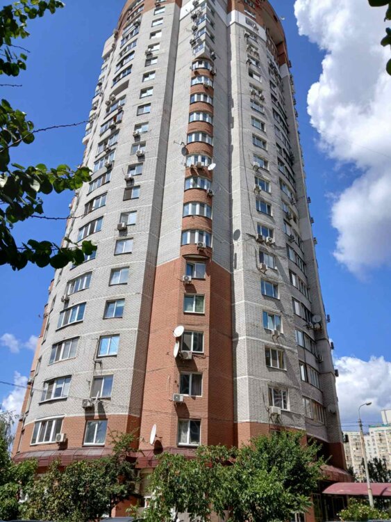2 кв. ул. Ахматовой 47, новый дом. 75/39/18 кв. м. 2/22 эт. Кирпич. Прекрасный дом на один подъезд. Квартира требует косметического ремонта. Пол – паркет, стеклопакеты, кондиционер. Два сан/узла – кафель, бойлер. Балкон с кухни застеклен. Окна во двор, тихое место. Рядом ТОЦ Аркадия, Сильпо, АТБ, рестораны, рынок, ТРЦ River mall, Novus. Чистый подъезд, консьерж, ОСББ. Счетчик тепла на дом. Отличная транспортная развязка. Метро "Осокорки" - 10 мин. пешком.
