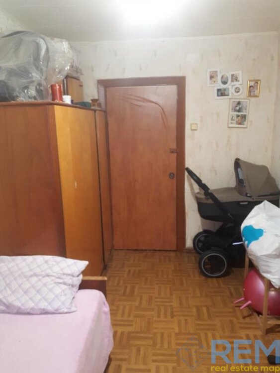 Имеет двухстороннюю планировку, состоит из двух смежных и одной отдельной комнаты. На полу линолеум. Лоджия застеклена, из нее открывается шикарный вид на парк.