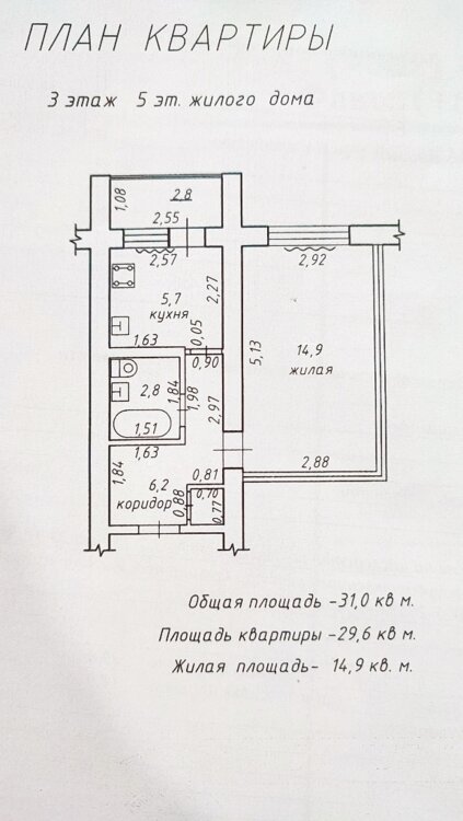 Общая площадь квартиры — 31 м².