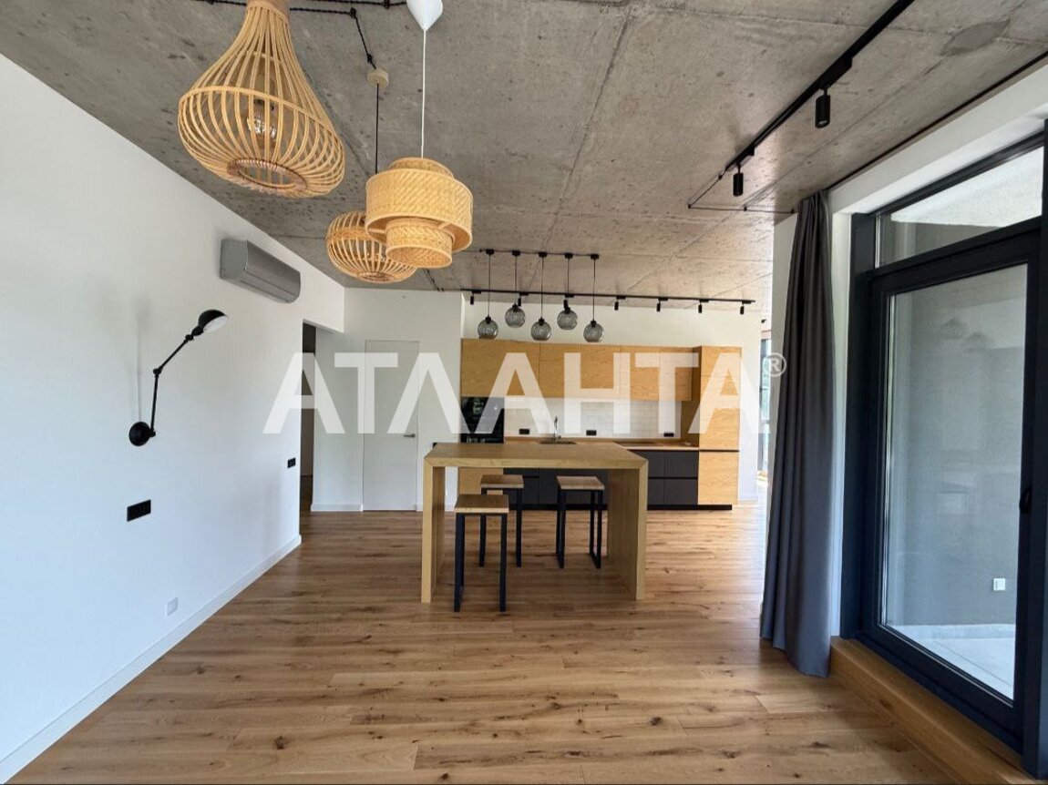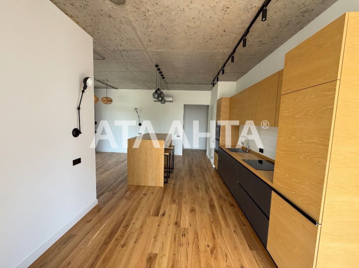 Кухня-студия, две спальни, просторная гардеробная, два сан узла и балкон.