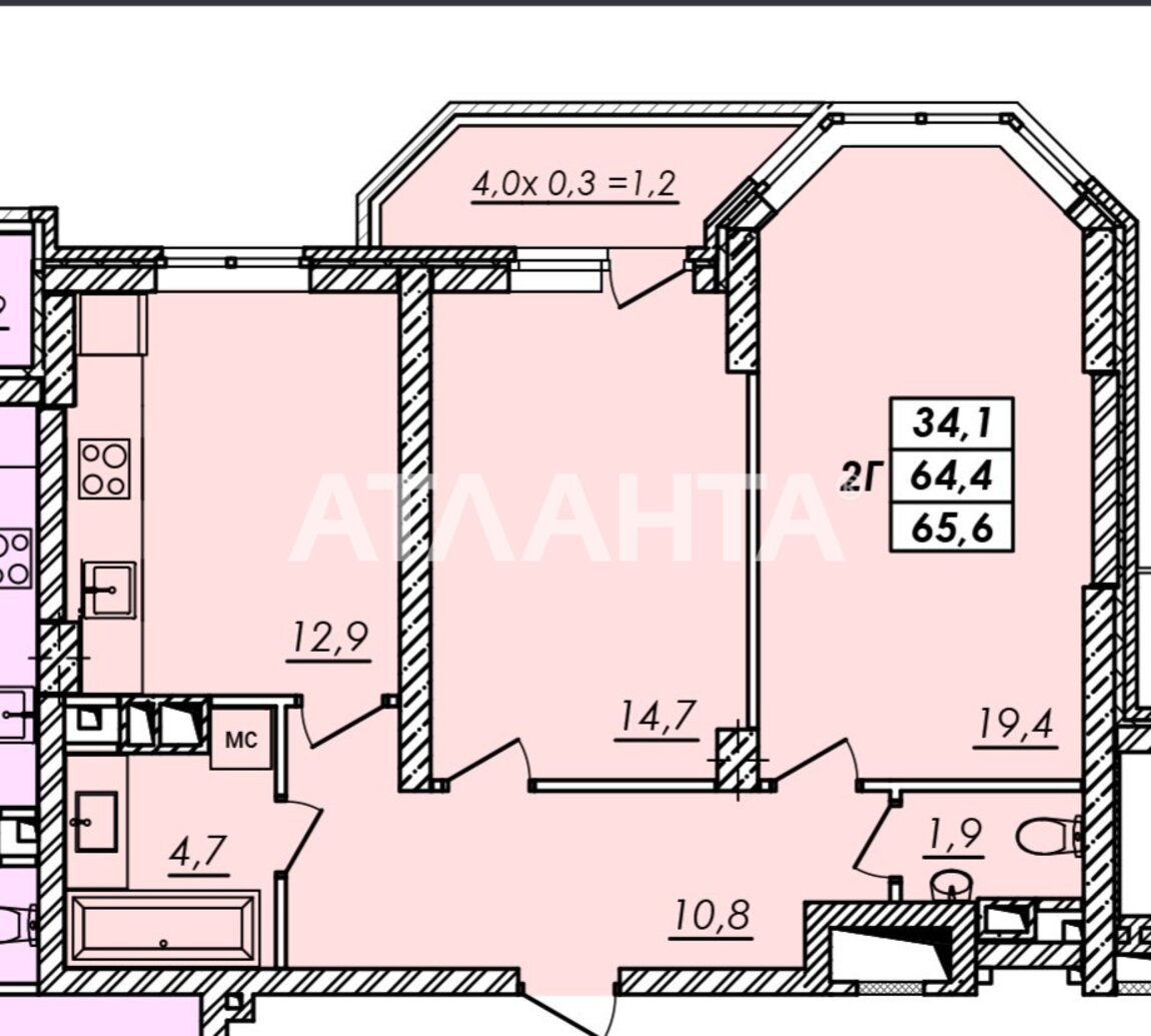 Очень удачная планировка! 2 раздельные комнаты и большая кухня!