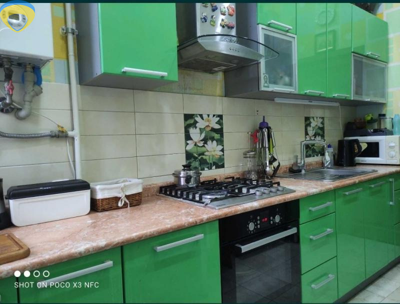 Балкон выходит во двор, застеклен. Санузел совмещен (ванна). Над санузлом кладовка. Бронированная входная дверь. Отопление двухконтурный котел. Счетчики на газ, воду, электроэнергию. Гидрофор.