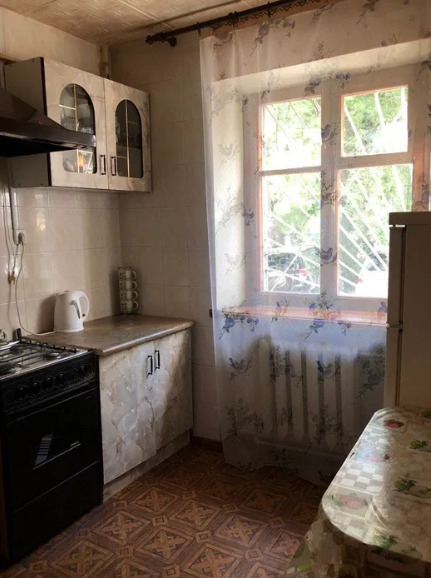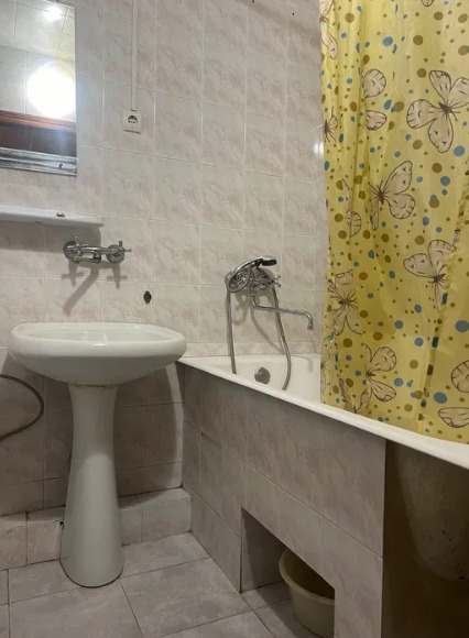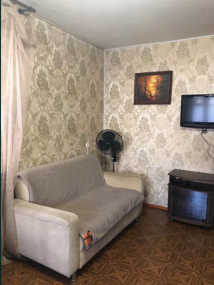 Квартира дворовая. Здесь имеются 2 раскладных дивана. Холодильник, телевизор, Газовая плита и электрочайник, утюг. Санузел совмещенный, но горячая вода подается круглосуточно (есть газовая колонка).