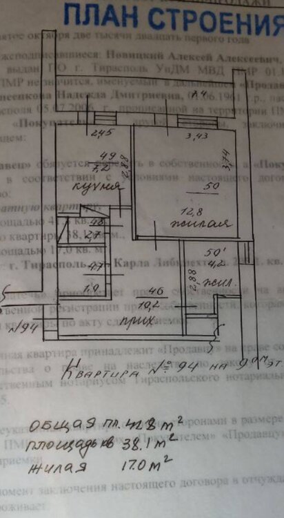 Продается 1х квартира г. Тирасполь, район Орион, улица Карла-Либкнехта 205/1