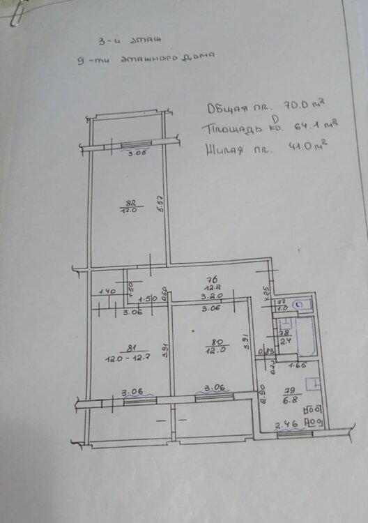 Квартира расположена на 3 этаже 9 этажного дома. Середина. Очень тёплая с центральным отоплением.