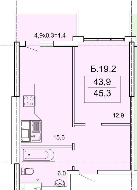 Общая площадь45 м²