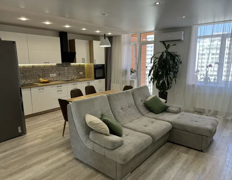 В квартире две отдельные комнаты + зал объединен с кухней. Установлена дорогая кухня, квартира полностью укомплектована новой техникой. Также установлена система бесперебойного питания, которая обеспечивает автономность во время отключения света (в стоимость квартиры не входит, щиток подготовлен для подключения аналогичной системы). Год назад освежил ремонт. Охраняемая и закрытая территория, подземный паркинг, в доме установлен генератор, который обеспечивает работу лифтов, системы безопасности и отопления во время отключения света. ID 42890