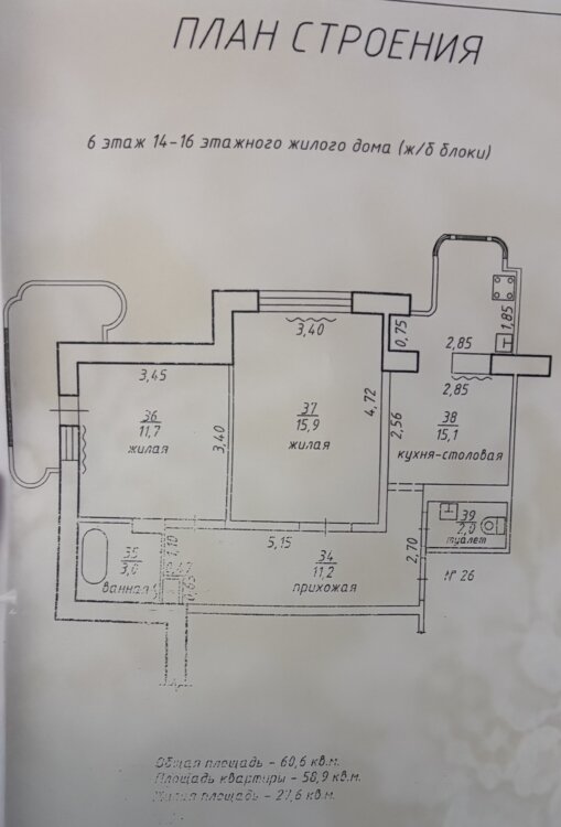 • Общая площадь — 60,6 кв. м