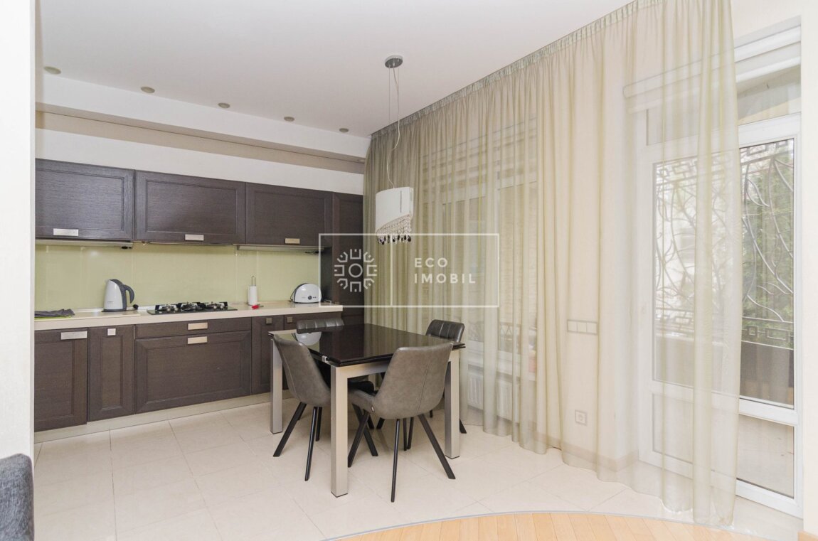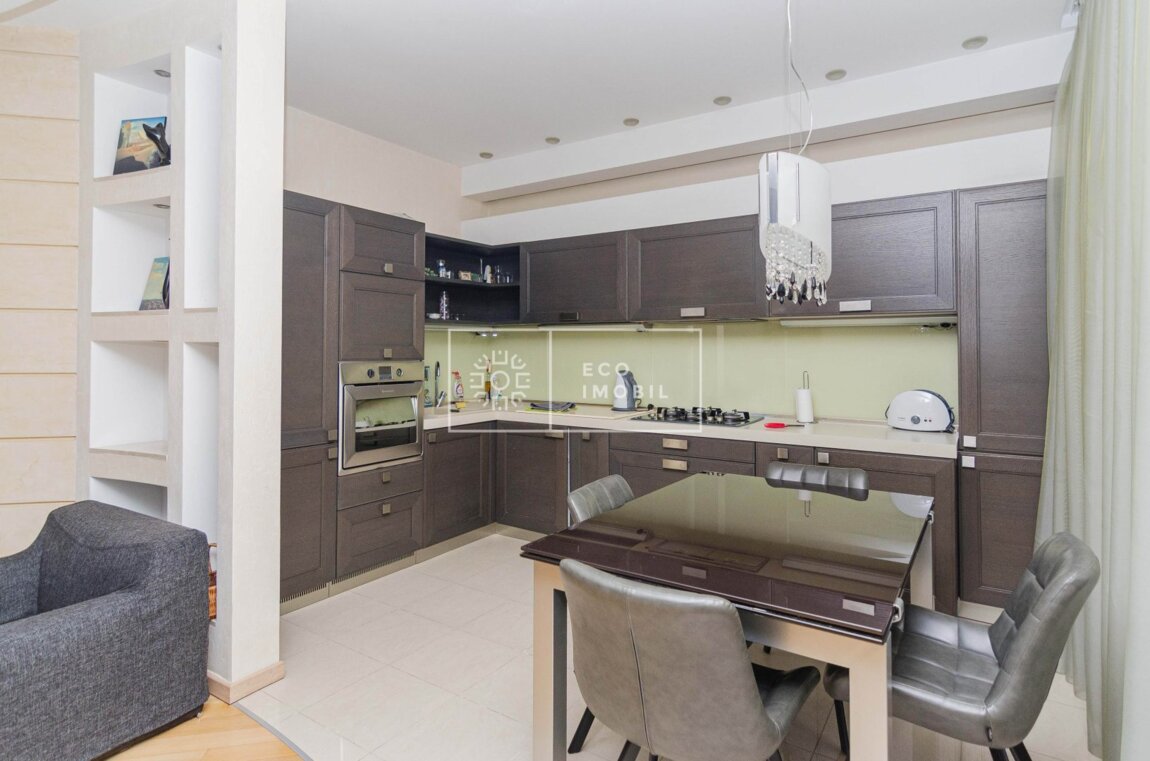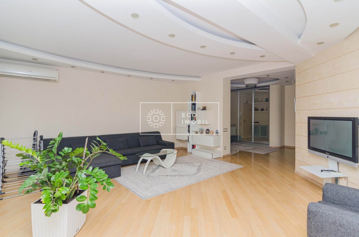 Spre vânzare apartament exclusiv cu 2 dormitoare și living, în Club House, cu grădină proprie, terasă generoasă și loc de parcare – combinația perfectă între apartament și casă. Proprietatea este amplasată în sectorul Centru, str. Ciuflea. Imobilul dispune de o suprafață de 126.1 m.p., dintre care 13.5 m.p. terasa și este poziționat la etajul întâi, nivelul 2 din 3. Caracteristici: design individual, reparație calitativă, obiecte sanitare instalate, complet mobilat și dotat cu tehnică de uz casnic performantă, geamuri termopane, pardoseală încălzită, planimetrie funcțională, compartimentare inteligentă și acces direct către curte – senzația autentică de casă individuală, cu avantajele unui complex securizat. Compartimentare: 2 dormitoare, livingul este comasat cu bucătăria, hol spațios, 2 grupuri sanitare, terasă, grădină frumos amenajată, loc de parcare deschis. Blocul dispune de pază și supraveghere video 24/24, curte cu acces limitat. În imediata apropiere se găsesc numeroase puncte sociale și comerciale: supermarket, farmacie, bancă, grădiniță, sală de fitness, zonă de parc etc. Acces facil la transportul public în orice direcție a orașului. Продаётся квартира с двумя спальнями и гостиной в клубном доме, расположенном в секторе Центр, на улице Чуфля. Квартира находится на 2 этаже из 3 и имеет площадь 115 кв.м. Недвижимость имеет собственный двор с прямым доступом с террасы. В стоимость квартиры включено место для открытой парковки. Характеристики: индивидуальный дизайн, .