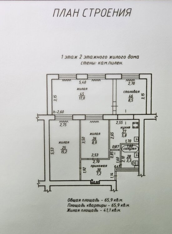 общая - 65,9 кв. м.