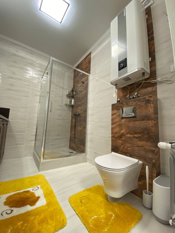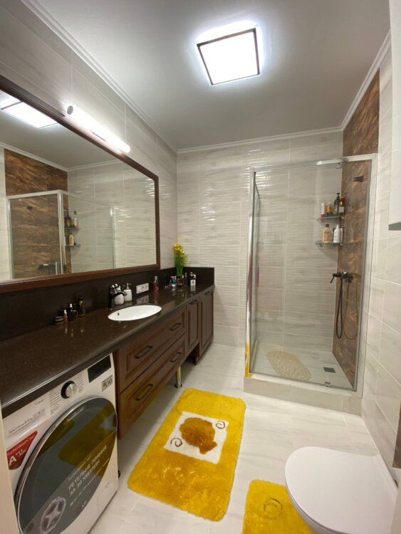 * Большой, современный санузел с изысканной столешницей из натурального камня. Ваша зона SPA на дому!