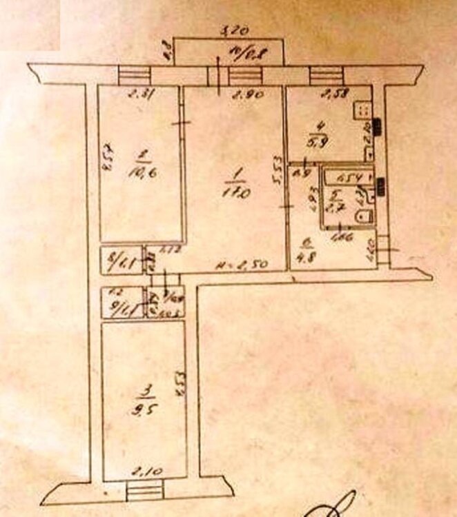 Ідеально під ремонт — зробите планування під себе: кухня-вітальня + 2 окремі кімнати або три окремі кімнати.