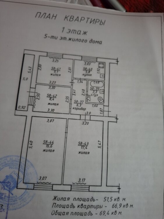 Жилая площадь51.5 м²