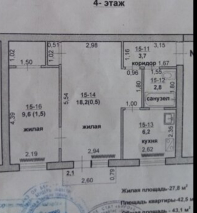 Общая площадь43 м²