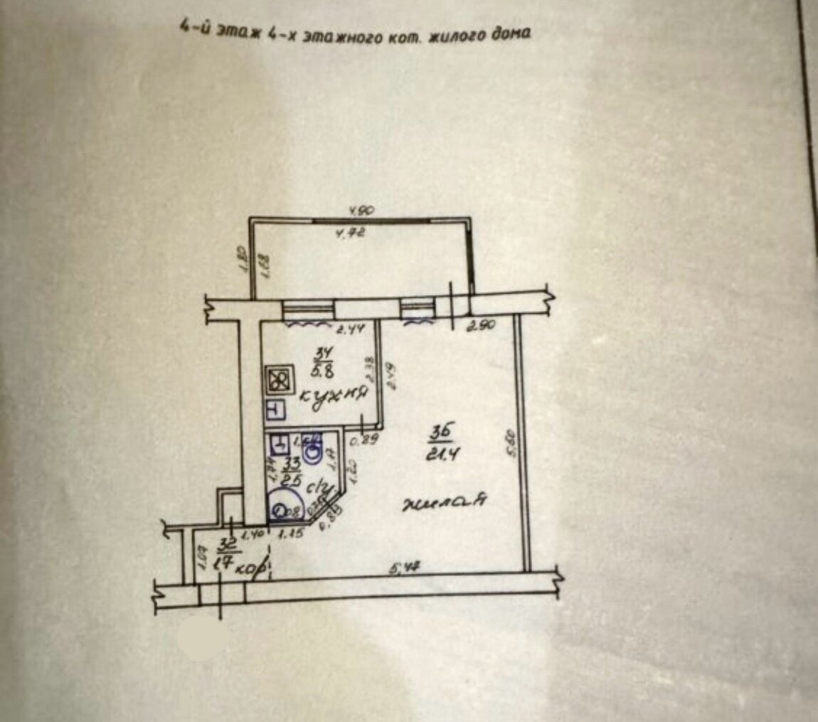 * Об. пл. - 35 кв. м. Квартира расположена на 4-ом этаже.
