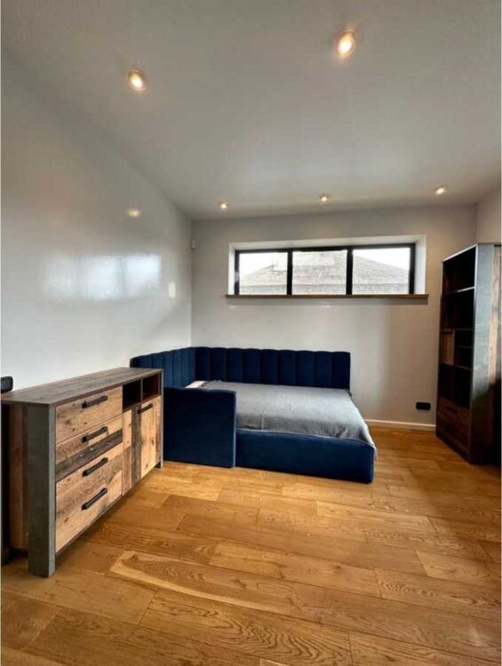 Площа будинку 284м2. На першому поверсі кухня-вітальня 50м2, гостьова спальня, сауна з виходом до спа, гараж на 2 авто з прямим входом в будинок. Зарядка для електромобіля. На другому поверсі 3 спальні, одна спальня з гардеробною кімнатою та зі своїм санвузлом. Всього в будинку 4 санвузла, кімната для прання. Всі меблі та техніка (Siemens, Bosch). Опалення (Buderus, Bosch) електричне, економне, 2 тарифа, 30 кВт. Є генератор на 7,5 кВт. Земельна ділянка 10 соток, на території вікові дерева, ландшафт, автополив. Окрема зона барбекю 40м2, спа зона, сауна. хоз приміщення код:a9bc711a