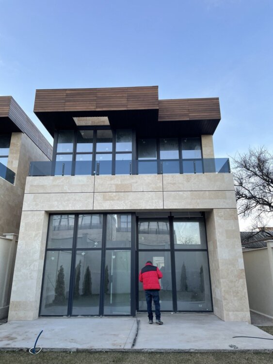 30264.Продам стильный дом возле моря в районе Дачи Ковалевского. 10 минут от моря. Построен из качественных материалов. Фасад дома в отделке травертин. Общая площадь 170 кв.м., высокие потолки 3,5 метра. Крышная терраса 100 кв.м. Все коммуникации городские. Панорамное остекление алюминиевый профиль. Два этажа. Распланирован: на 1 этаже входная группа, холл, кухня-студия, санузел, комната. На 2 этаже: коридор, 2спальни, кабинет, санузел и выход на крышную террасу 100 кв.м. Стены кирпич. Расположен на 3 сотках земли. Есть госакт. Есть парковочное место возле дома. Закрытая территория, удобный заезд с улицы Долгой и 411 батареи.
