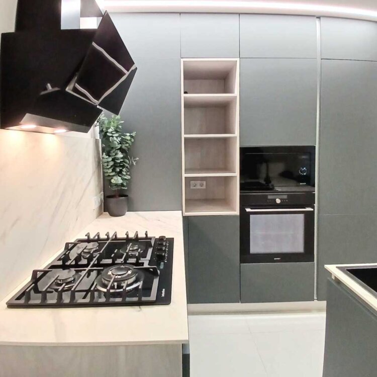 В кухне вся необходимая техника, удобные решения, современные дорогие материалы, приятные цвета- белый и матовый спокойный пыльный зеленый. Материалы фасадов с покрытием. На которых не остается отпечатков от прикосновений. Микроволновка Gorenje, холодильник Whirlpool 6th Sense, духовка Whirlpool с автопрограммами и цветным экраном, плита газовая с турборежимом и таймером interline, посудомойка 60 Whirlpool с автоматическим открытием.