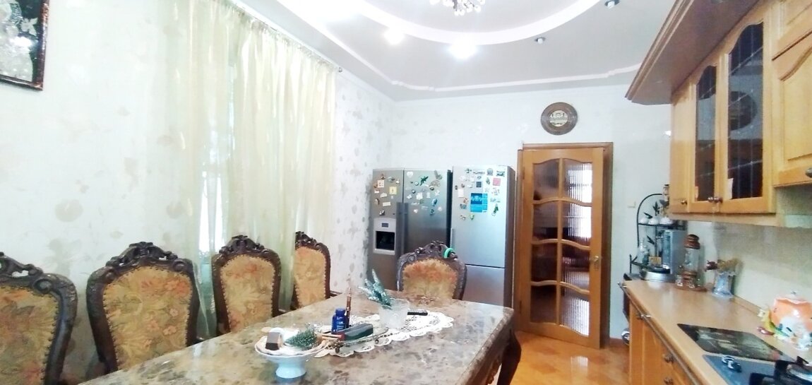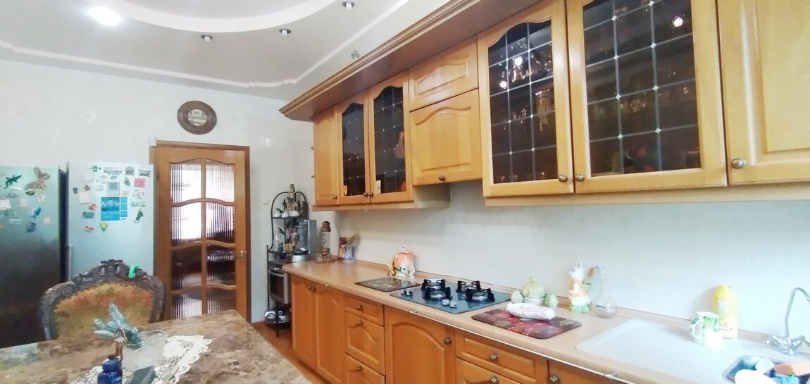 Дом на 13 сотках земли Царское село-1, ул. Высоцкого/Новая.Общая площадь 385 кв.м, 4 уровня.На первом этаже- прихожая, кухня-гостиная с действующим камином 48 кв.м., 2 комнаты, санузел; на втором этаже- 4 комнаты, санузел.Мансардный этаж- 2 гардеробные комнаты, санузелВ цоколе - капитальный гараж на 3 авто, прачечная, котельная, щитовая, кладовая.Во дворе есть еще один гараж и крытая стоянка для авто.Сад с фруктовыми деревьями, летняя кухня, мангал, очень красивая зелёная территория, лаунж-зона.Дом под охраной.