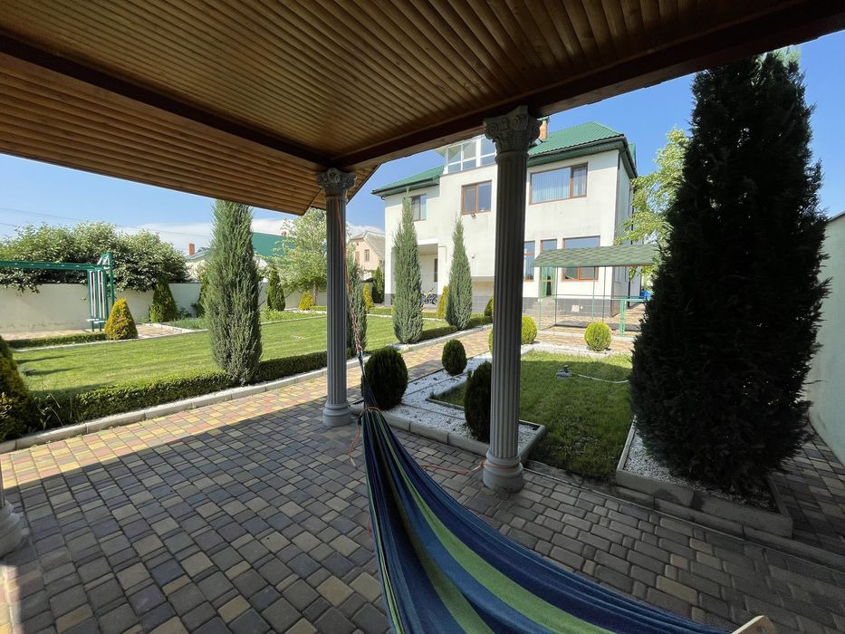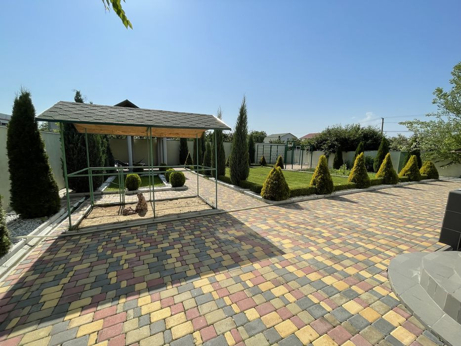 Продам капитальный новый дом на 10 сотках в Сухом Лимане.Первый этаж - спальня, кабинет, большой зал, кухня-студия с выходом на задний двор.Второй этаж - кабинет, четыре спальни, санузел, большой балкон с панорамным остеклением.Мансардный этаж - зал с панорамным видом на лиман.Дом укомплектован мебелью и техникой.На участке есть гостевой дом - гараж, гостиная, санузел.Место для нескольких авто, ландшафтный дизайн. ID 5527