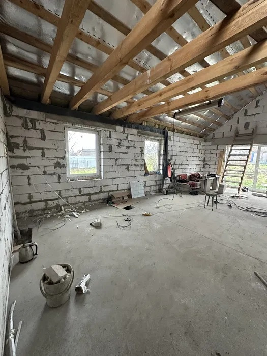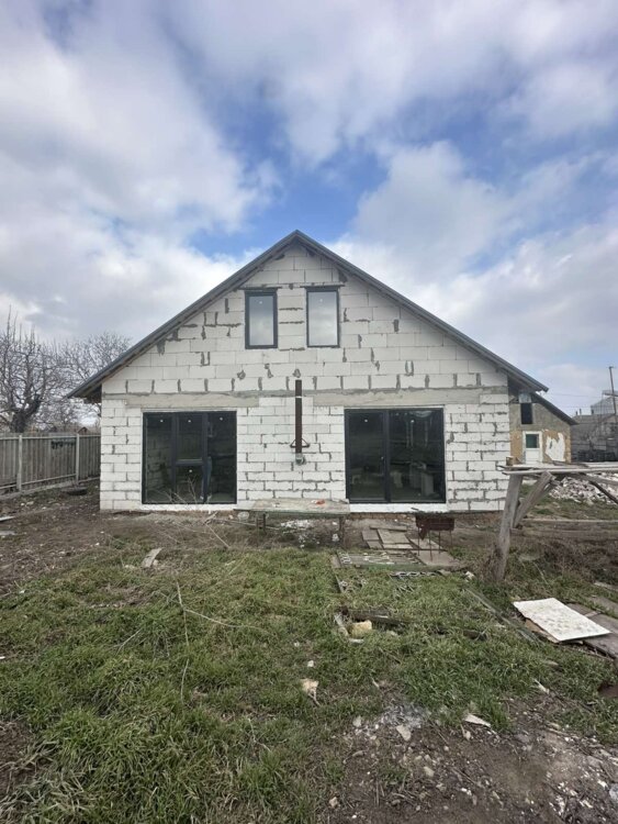 Продам дом в пригороде Одессы с. Александровка ( г. Черноморск Ильичевск).Продам компактный новый недостроенный дом.Общая площадь 1 го этажа 70 кв.м. По плану 2 комнаты, кухня гостиная. санузел. плюс Сверху по плану жилая мансарда.Залита сухая стяжка, установлены металлопластиковые окна ( профиль рехау).Перекрытие на 2й этаж - дерево.Вода и свет заведены в дом. Газ по меже. Выгребная яма.Участок 15 соток , прямоугольной формы, фасад -30 м.Есть возможность разделения на 2. 2 выгребных ямы.2 пары ворот.ID 8418