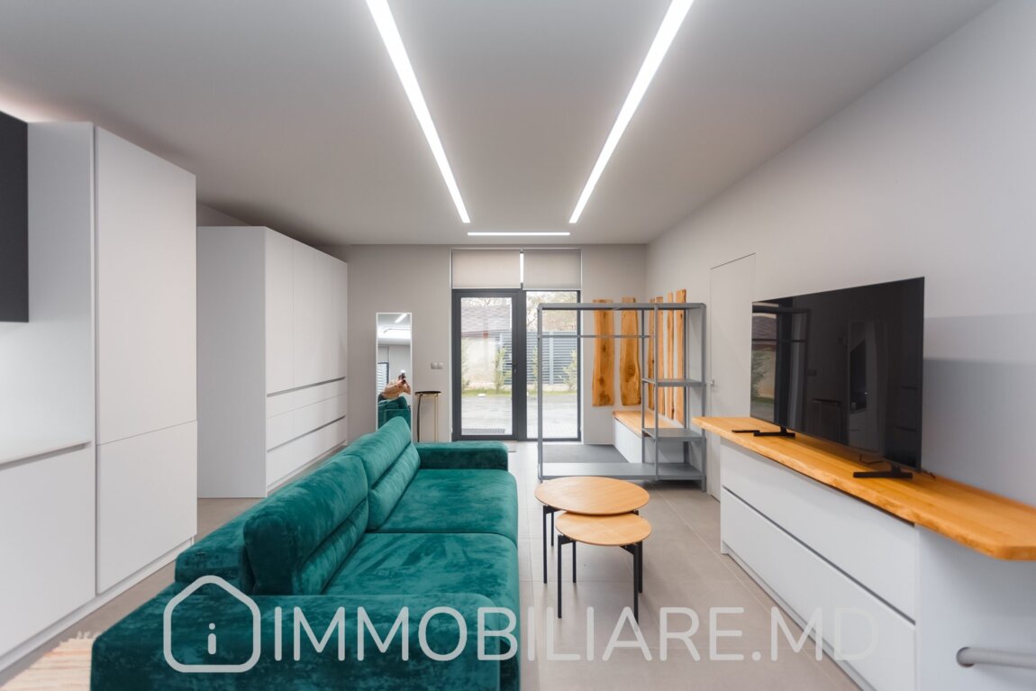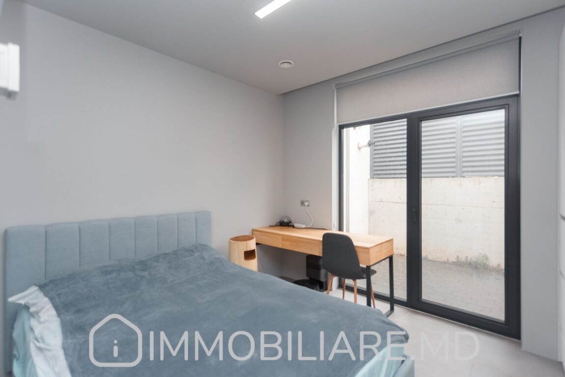 Casă Hi-Tech, sect. Centru Vă propunem spre vânzare casă amplasată pe un teren de 7,4 ari în sect. Centru, str. Caișilor. Zonă cu infrastructură bine dezvoltată. Acces facil la transportul public în orice direcție a orașului. Suprafața totală de 110 mp. Casa dispune de: – aparat de aer condiționat;, – încălzire prin pardoseală;, – geamuri termopan; – toată mobila și tehnica necesară pentru un trai confortabil.