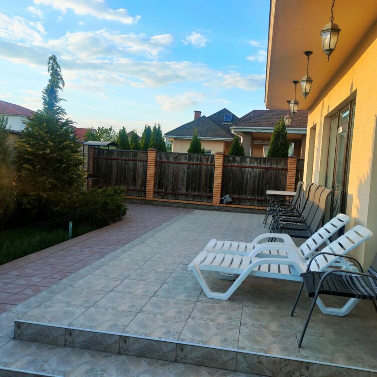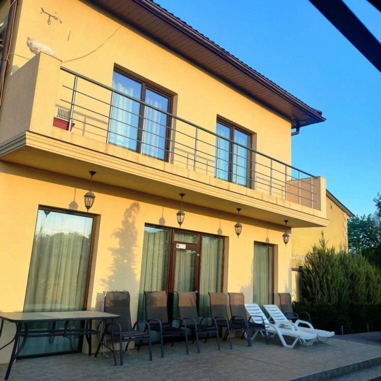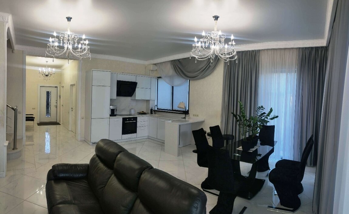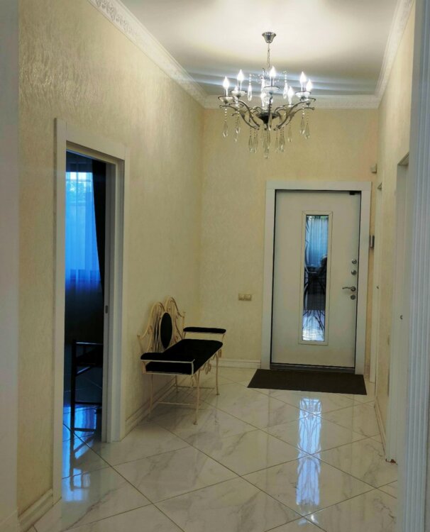 Предлагаем в продажу современный дом в с.Лески, всего в 1 км от Одессы. Просторний дом с хорошо продуманной удобной планировкой. На первом этаже - просторная гостиная - кухня - столовая с выходом на террасу, жилая комната, санузел, котельная. На второй этаж ведет удобная лестница, здесь четыре комнаты и санузел. В двух комнатах есть выход на балкон. Дом полностью укомплектован мебелью и техникой. На ухоженном участке 4 сотки ландшафтный дизайн, благоустроенное место для отдыха и для парковки авто и отдельно стоящий гостевой домик со всеми удобствами мебелью и техникой. Участок выходит на две улицы, есть два входа и два въезда. Полный пакет документов на дом и участок. Звоните- организуем оперативно просмотр!ID 8531