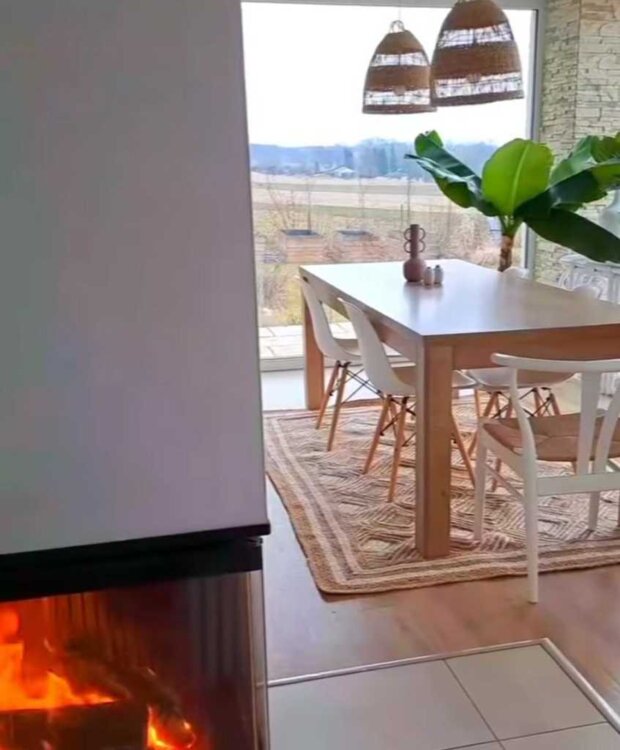 Велика кухня вітальня 33 метри з вітражними вікнами ,де затишно вечорами та сонячно з ранковою кавою.
