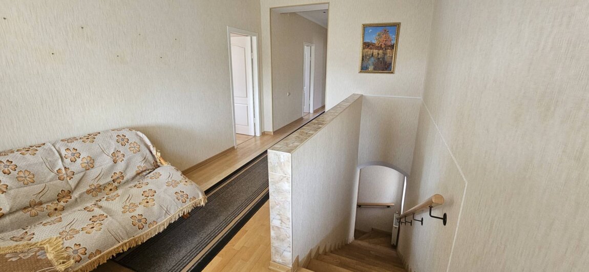 В продаже добротный двухэтажный дом на участке 5 соток. Продуманная и удобная планировка: на первом этаже расположены просторная кухня-гостиная, большая гостевая комната и санузел с ванной. На второй этаж ведёт дубовая лестница с резными перилами. Здесь находятся три спальни, санузел, гардеробная с выходом на чердак и лоджия. В доме выполнен качественный ремонт: паркетная доска из ясеня, двухкамерные металлопластиковые окна — всё делалось для себя, без экономии. Есть большой подвал, где размещена котельная с двумя котлами (газовый и твердотопливный), бойлер на 300 литров и два резервуара по 1000 литров для воды. Также предусмотрены помещения для хранения консервации и инструментов. На участке — кирпичный барбекю-комплекс, аккуратный курятник, дровяной сарай. Огромная выгребная яма вынесена за периметр участка. Посажен плодоносящий сад: деревья, кусты малины и смородины, туя у ворот. Газовый и электрический счётчики вынесены за пределы двора. Крыша покрыта битумной черепицей, предусмотрен навес для автомобиля. Слив с крыши отведён в три резервуара для дождевой воды. Всё в доме и на участке продумано до мелочей. Отличное и выгодное предложение для данной локации.Посредникам, просьба не беспокоить.ID объекта: 209924