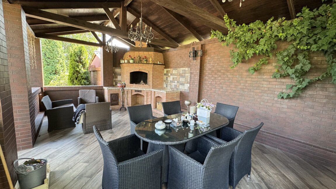 • Большая беседка с мангальной зоной — идеальное место для семейных ужинов и встреч с друзьями;