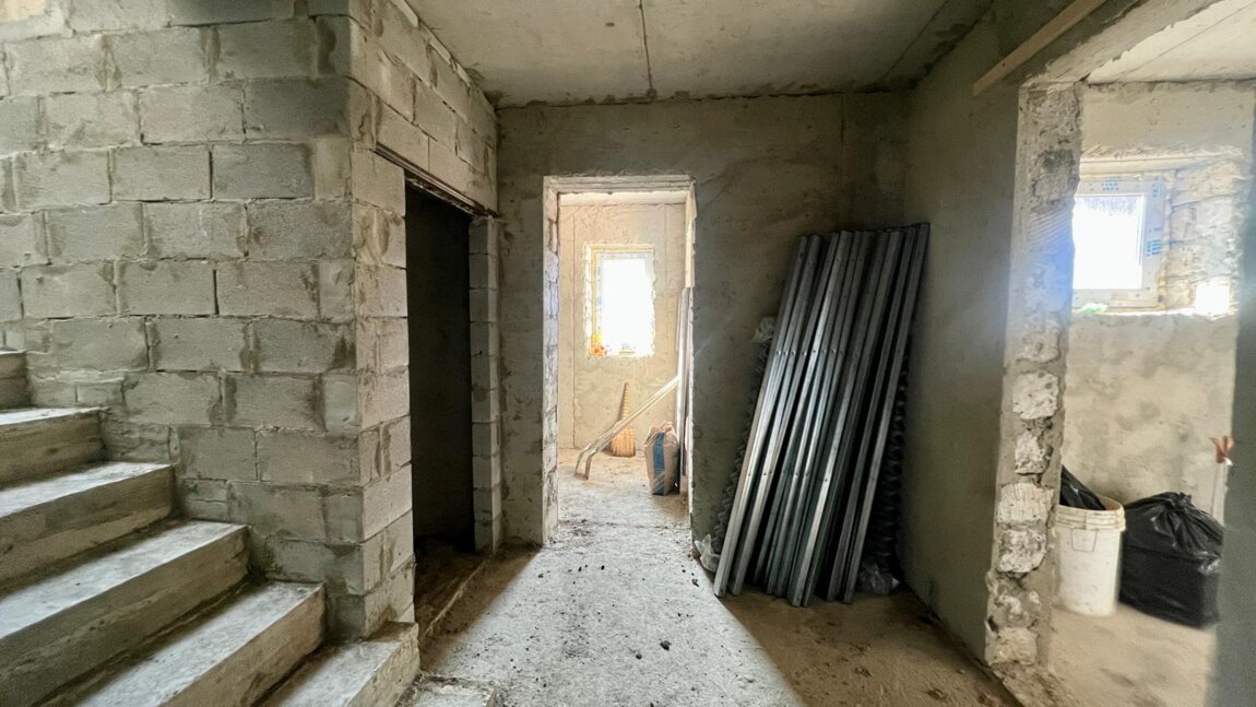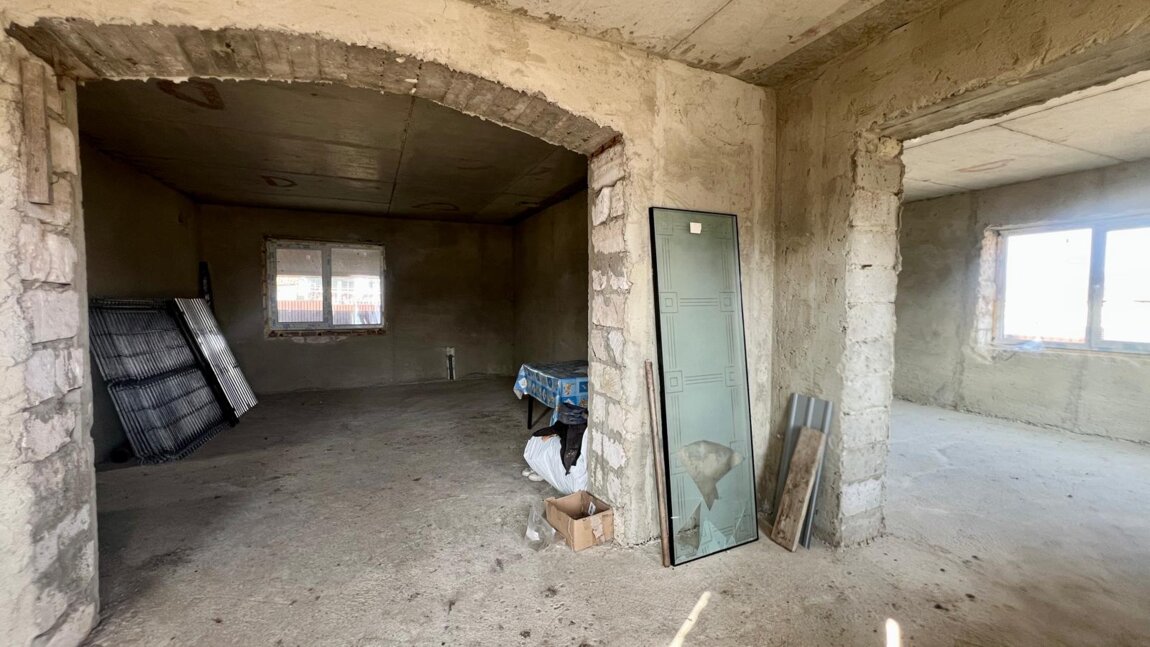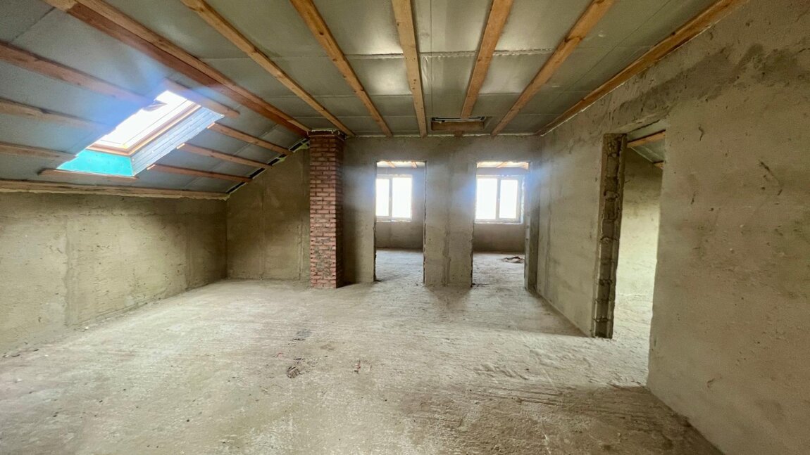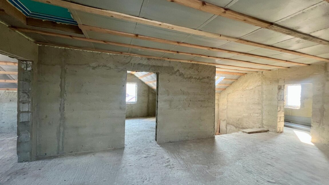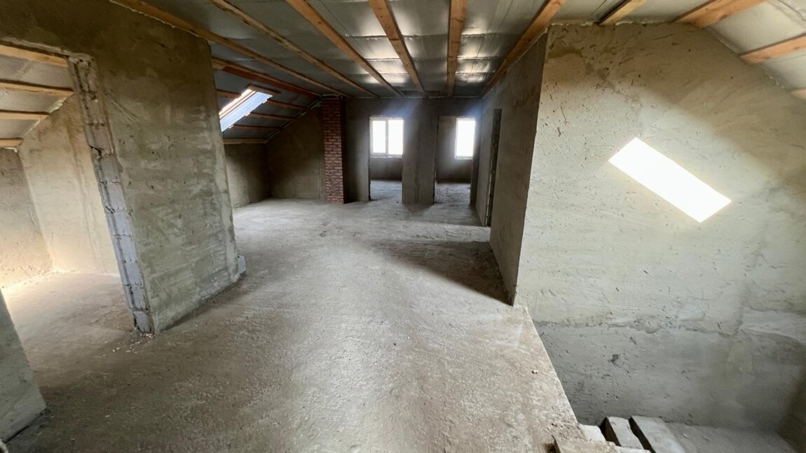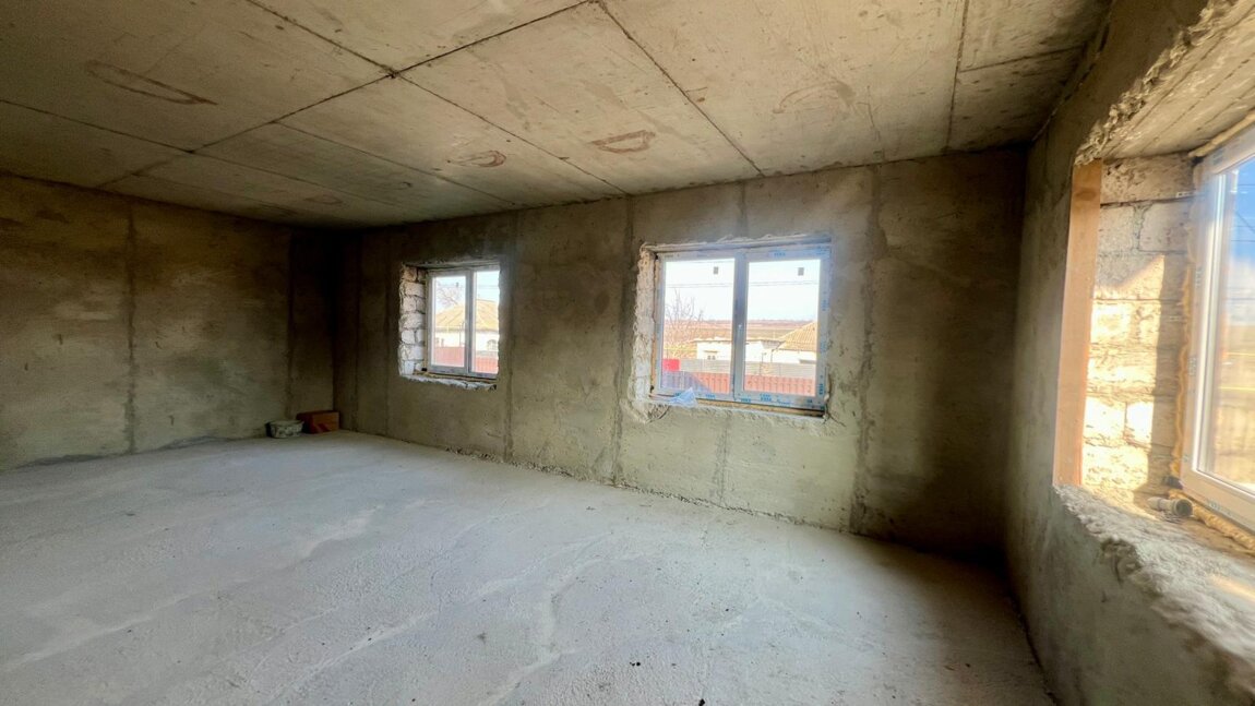 Casă are suprafața totală de 220 m. p și este compartimentată în: 5 camere, bucătărie, 2 blocuri sanitare, antreu, verandă, garaj și beci.
