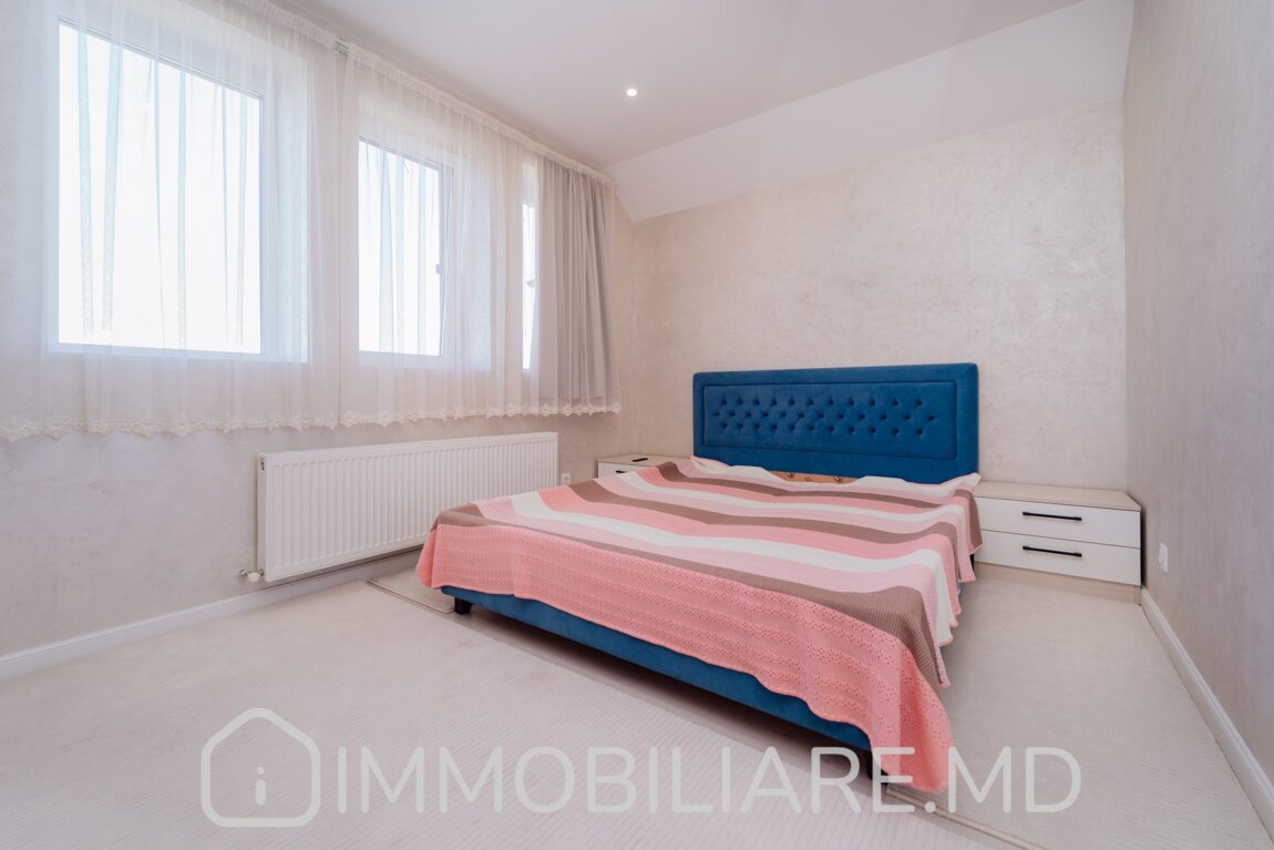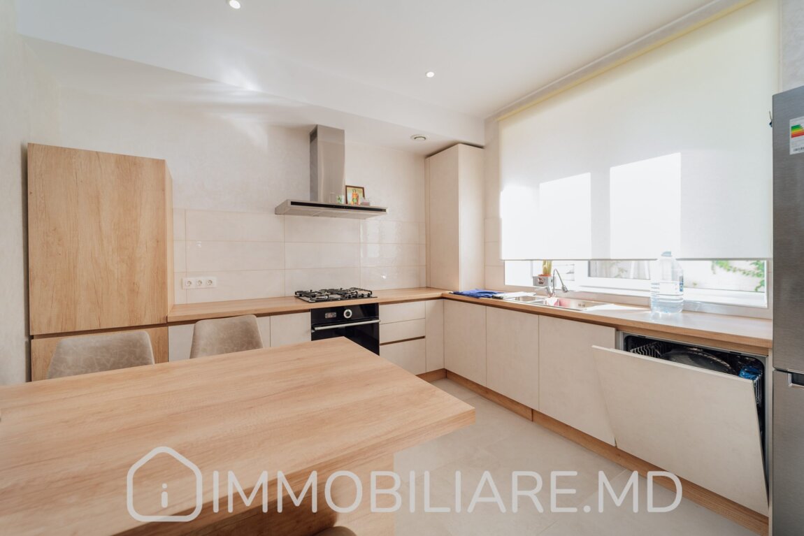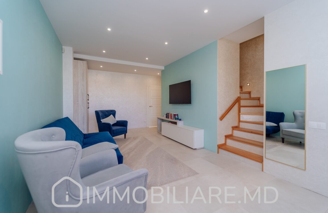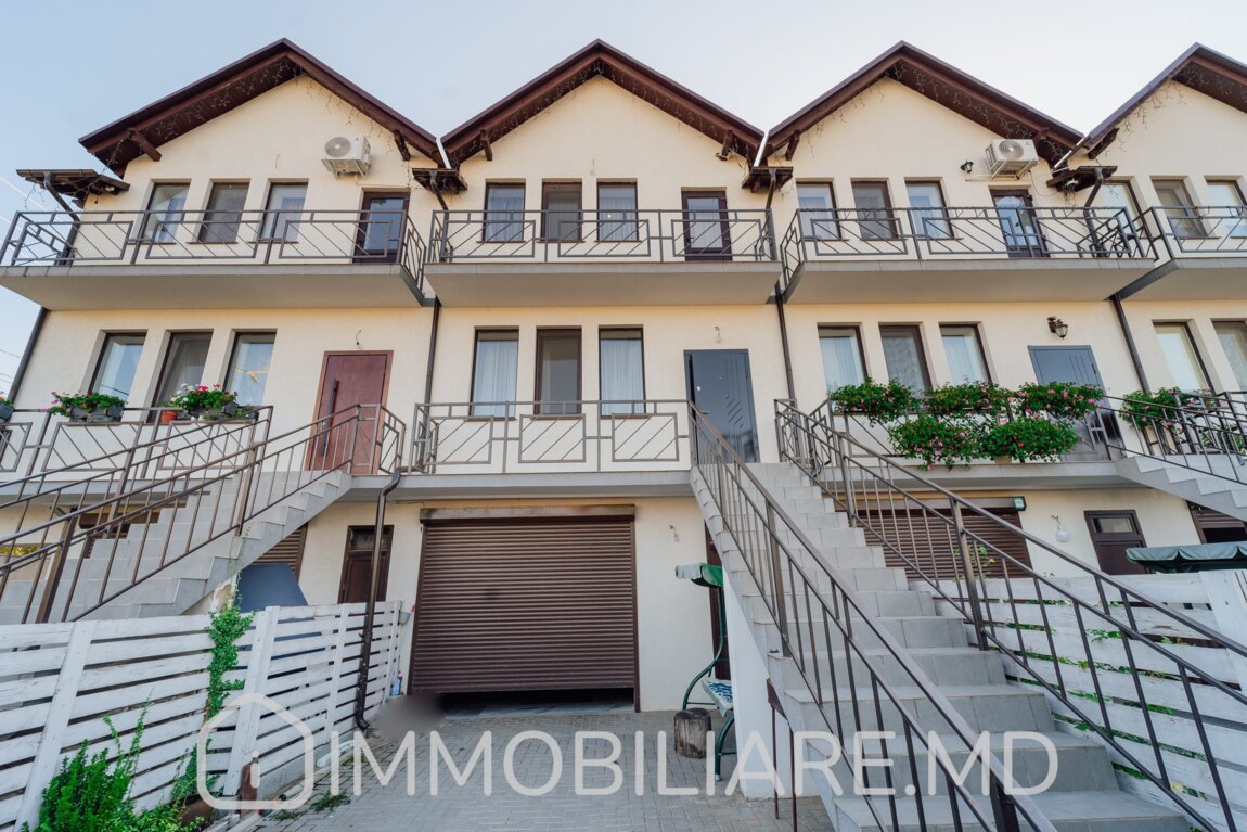 Townhouse cu 2 niveluri, or. Durlești Vă propunem spre vânzare townhouse cu 2 niveluri amplasat în or. Durlești, str. Calea Unirii. Zonă cu infrastructură bine dezvoltată. Acces facil la transportul public în orice direcție a orașului. Suprafața totală de 162 mp. Casa dispune de: – aparat de aer condiționat;, – încălzire prin pardoseală;, – geamuri termopan;, – subsol; – toată mobila și tehnica necesară pentru un trai confortabil. Compartimentare: Demisol: Garaj, 2 încăperi depozitare/beci, mini-bucătărie lângă zona de grătar. Nivelul 1:Antreu, living, bucătărie cu ieșire pe terasă, baie cu duș. Nivelul 2: 3 dormitoare separate, baie cu cadă. Mansardă: Spațiu pentru depozitare. Facilități: – Construcție din piatră de calcar, termoizolație exterior + mansardă – Cazan condensare, pardoseală încălzită (bucătărie, living, băi) – Sistem pază, detectoare mișcare – Ventilare cu recuperare – Aer condiționat – Porți automate. Eficiență energetică, zonă liniștită, 5 min pe jos de la linia de troleibuz de la Buiucani (str. Tudor Vladimirescu).