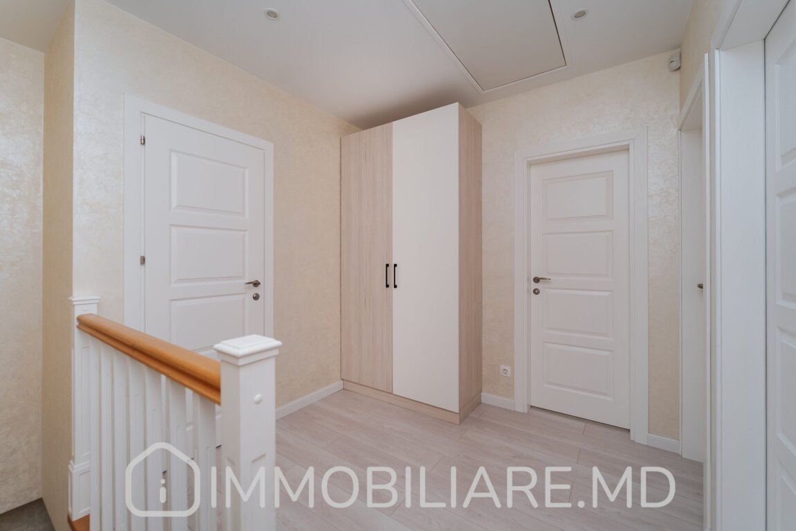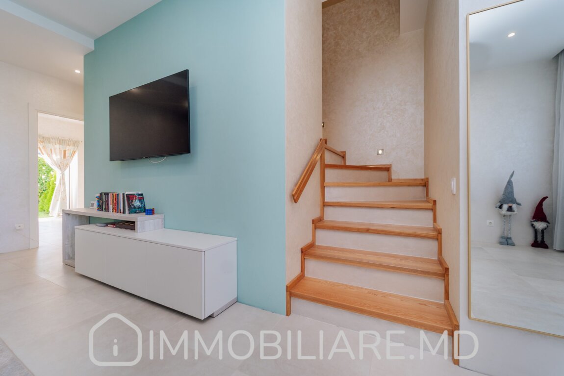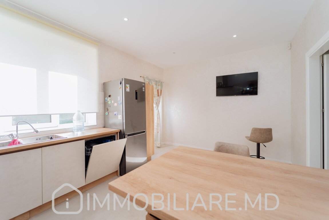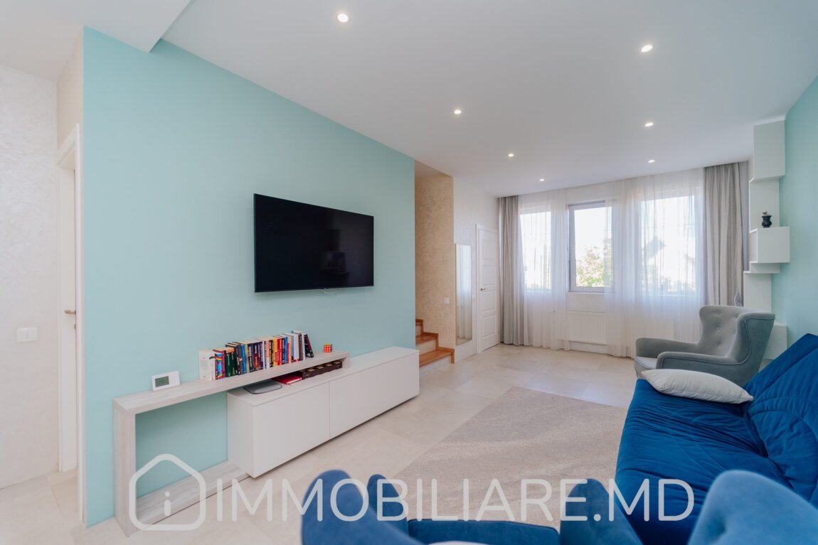 Townhouse cu 2 niveluri, or. Durlești Vă propunem spre vânzare townhouse cu 2 niveluri amplasat în or. Durlești, str. Calea Unirii. Zonă cu infrastructură bine dezvoltată. Acces facil la transportul public în orice direcție a orașului. Suprafața totală de 162 mp. Casa dispune de: – aparat de aer condiționat;, – încălzire prin pardoseală;, – geamuri termopan;, – subsol; – toată mobila și tehnica necesară pentru un trai confortabil. Compartimentare: Demisol: Garaj, 2 încăperi depozitare/beci, mini-bucătărie lângă zona de grătar. Nivelul 1:Antreu, living, bucătărie cu ieșire pe terasă, baie cu duș. Nivelul 2: 3 dormitoare separate, baie cu cadă. Mansardă: Spațiu pentru depozitare. Facilități: – Construcție din piatră de calcar, termoizolație exterior + mansardă – Cazan condensare, pardoseală încălzită (bucătărie, living, băi) – Sistem pază, detectoare mișcare – Ventilare cu recuperare – Aer condiționat – Porți automate. Eficiență energetică, zonă liniștită, 5 min pe jos de la linia de troleibuz de la Buiucani (str. Tudor Vladimirescu).