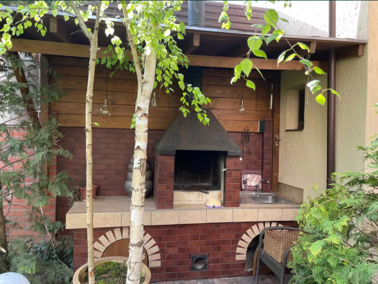 Дом 192 кв.м., 2 этажа.2-й этаж состоит из: 3 спальни, гостиная, гардеробная, зимний сад.1-й этаж: коридор, сан.узел, гостиная с камином, кухня, столовая, кабинет.Дом имеет 2 выхода, центральный и выход из кухни прям в сад.На территории находится беседка и зона для барбекю с действующим мангалом.В отдельном двух этажном здании расположен Гараж на две машины, баня, бильярдная.Полный пакет документов на дом и участок.ID 5027