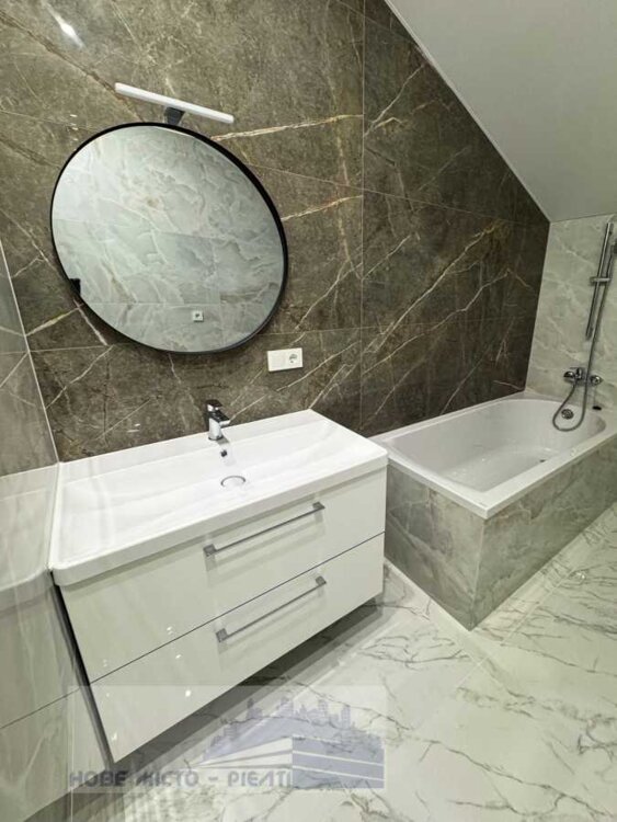 Два сучасних санвузли, стильні мармурові підлоги та якісна сантехніка.