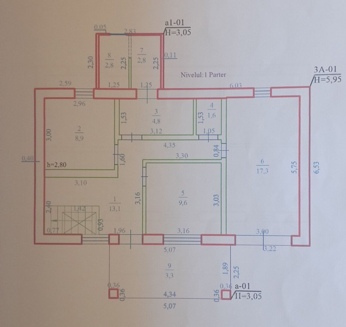 Дом состоит из: 4 комнат, каса маре, кухни, 1 санузел, 1 ванная комната, прихожая, погреб, гараж с ямой и подвал, балкон и терраса.