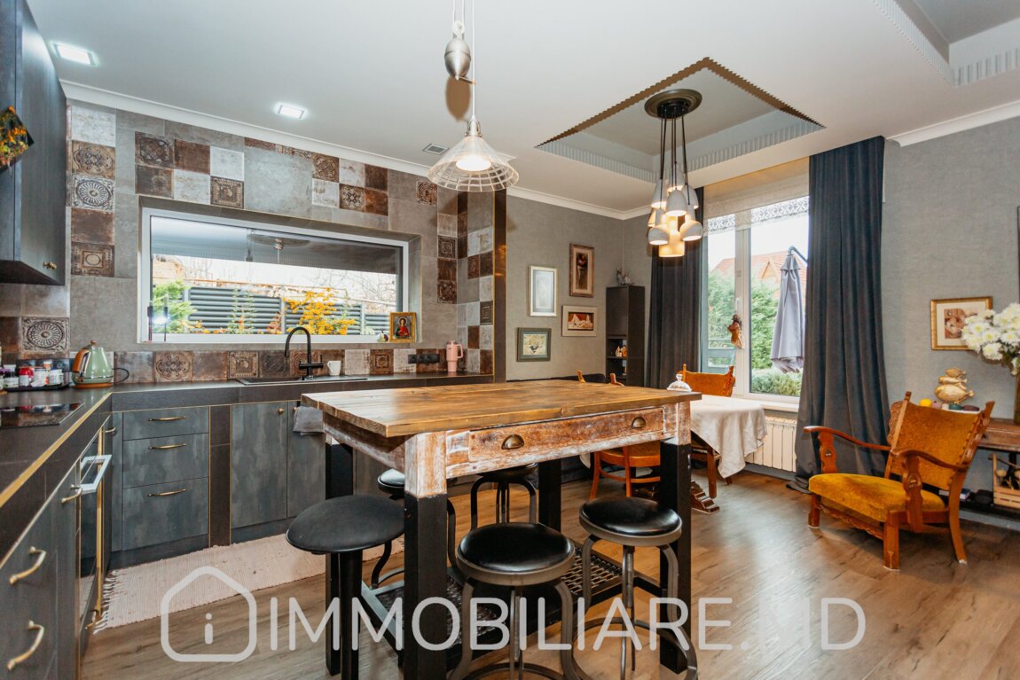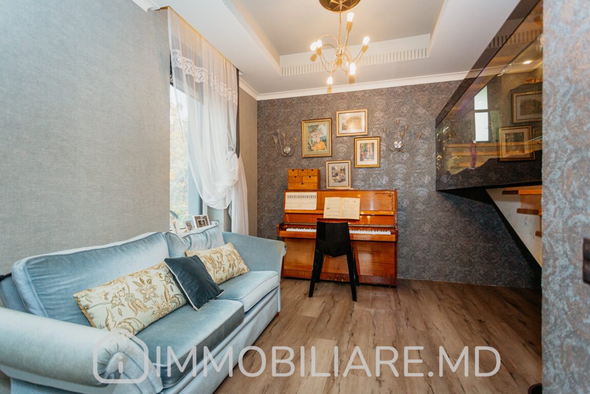 Casă cu 3 niveluri, com. Tohatin Vă propunem spre vânzare casă cu 3 niveluri amplasată pe un teren de 10 ari în com. Tohatin, str. Budești. Zonă cu infrastructură bine dezvoltată. Acces facil la transportul public în orice direcție a orașului. Suprafața totală de 420 mp. Casa dispune de: – aparat de aer condiționat;, – încălzire prin pardoseală;, – geamuri termopan;, – subsol;, – șemineu; – sistem automat de irigare, – piscină, – saună cu terasa vară/iarnă, – toată mobila și tehnica necesară entru un trai confortabil.
