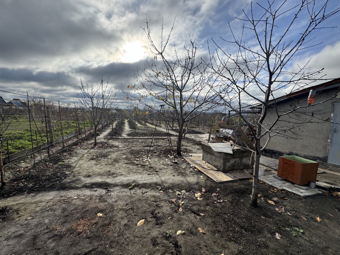 Огород 12 соток с фруктовыми деревьями, хорошими сортами винограда.