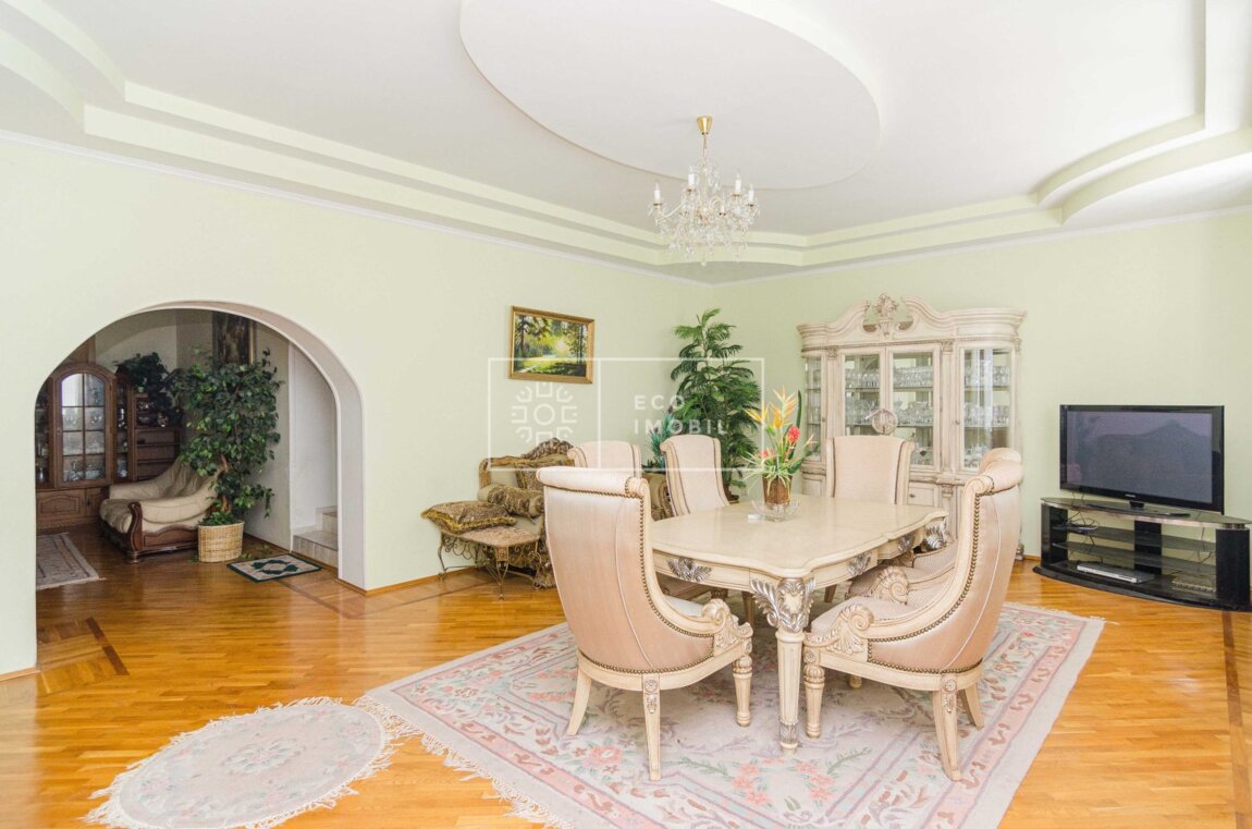 Spre vânzare casă în 3 nivele și subsol, amplasată în mun. Chișinău, Codru, Schinoasa, str-la Pomicultorilor intersecție cu str. Sihastrului. Imobilul dispune de o suprafață generoasă de 200 m.p., fiind poziționat pe un teren de 6,36 ari. Proprietatea se prezintă în variantă finisată și dispune de reparație cu design individual, mobilier efectuat la comandă, tehnică de uz casnic, încălzire autonomă, planimetrie funcțională, parchet și uși din lemn, sistem de aer condiționat Toate comunicațiile conectate. Compartimentare: Subsol: beci, spații de depozitare, bucătărie, garaj. Nivelul I: antreu, bloc sanitar separat, bucătăria, hol spațios, livingul, un dormitor. Nivelul II: 4 dormitoare, bloc sanitar separat, hol, loggie de tip închis, balcon de tip deschis. Nivelul III: Open Space Imobilul dispune de curte spațioasă de tip închis. În curte – terasă amenajată cu toate comunicațiile conectate. Casa este amplasată pe str-la Pomicultorilor intersecție cu str. Sihastrului, dispune de acces facil la transportul public, infrastructură dezvoltată. Продаётся дом в 3 уровня и цоколь, расположенный в мун. Кишинёв, Кодру, Скиноаса, на перекрёстке переулок Помикулторилор и ул. Сихаструлуй. Недвижимость имеет просторную площадь — 200 кв.м, расположена на участке 6,36 соток. Дом в завершённом состоянии, выполнен ремонт с индивидуальным дизайном, мебель изготовлена на заказ, бытовая техника, автономное отопление, функциональная планировка, паркет и двери из натурального дерева, система ...