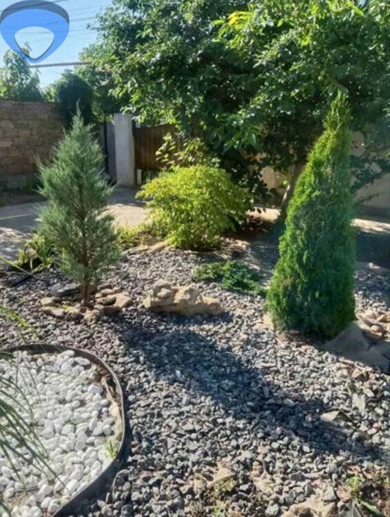Участок благоустроен — аккуратный двор, ландшафтный дизайн и плодовые деревья создают приятную атмосферу для отдыха на свежем воздухе. Есть гараж и удобный подъезд к дому.