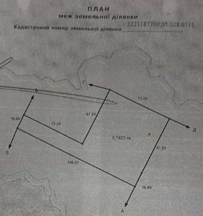 Контакти для зв’язку: 0504327942 Євгенія. Пропонується до продажу земельна ділянка площею 0,7425 га к/н 3223187700:05:, яка розташована за адресою: Київська обл., Обухівський р-н, Старобезрадичівська с/р.