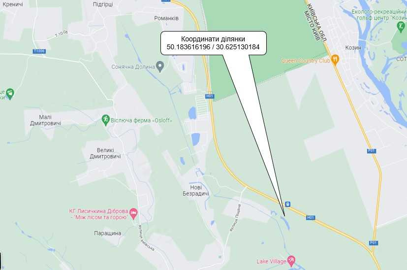 Ділянка має зручне місцерозташування, це затишне місце за містом в 30 км. від Києва.