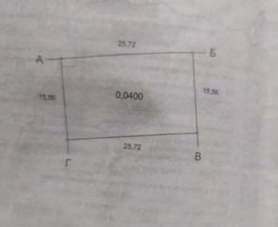 Земельный участок 4 сотки, правильной формы 25,72Х15,6м.Коммуникации по границе участка.Асфальтированная, застроенная улица.ID 2577