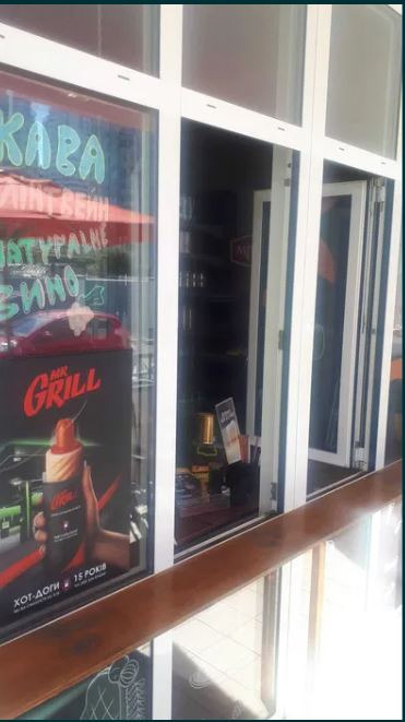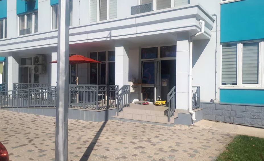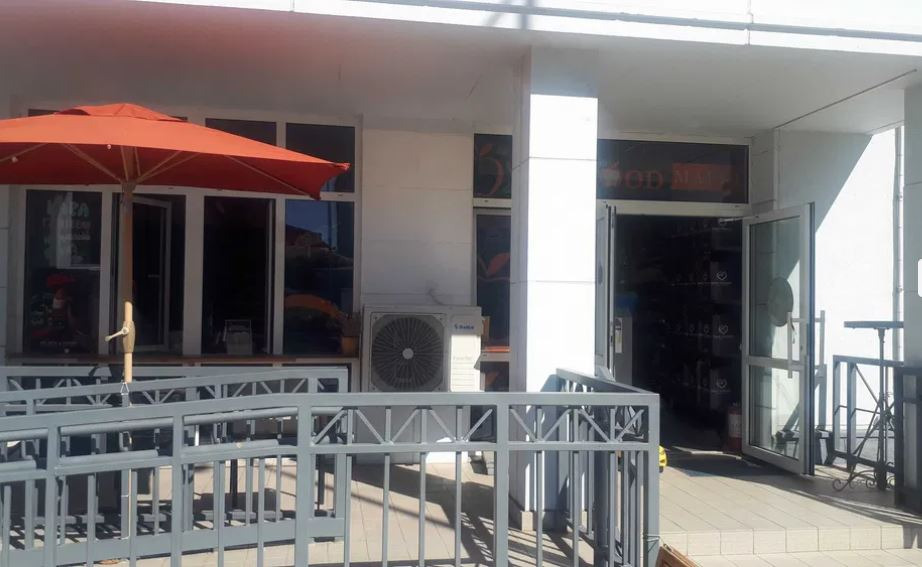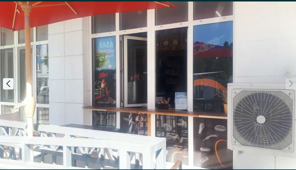 Перед магазином есть просторная терраса со столиками