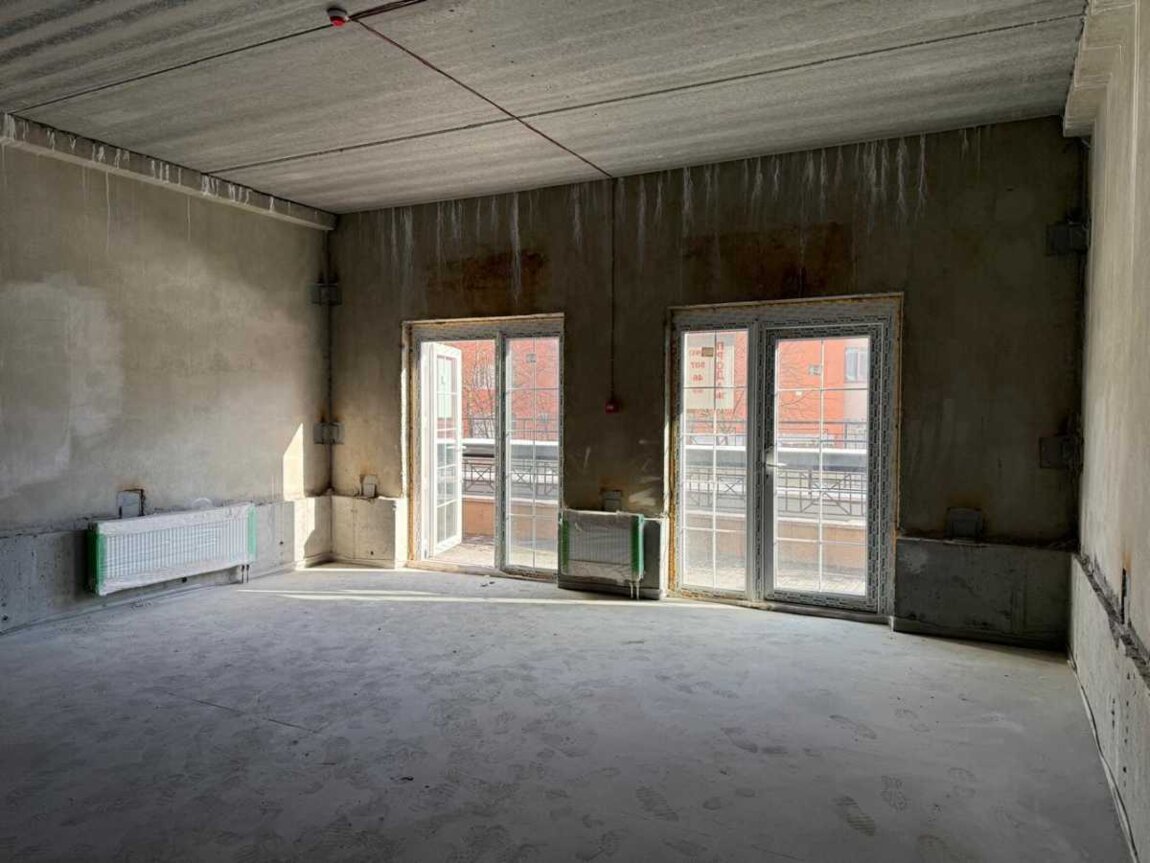 -Фасадне приміщення 45.32 кв.м, нежитловий фонд, окремий вхід, місце під велику вивіску, високі стелі Н=3,5 метра. Лічильники на воду електро, опалення (автономна котельня в комплексі). Літня тераса, перед приміщенням можна ставити столики. Приміщення розташоване в обжитому будинку "Ньюкасл" на 450 квартир.