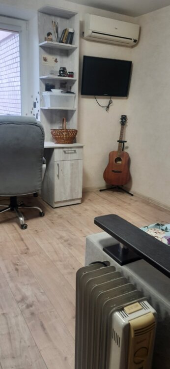 Двухкомнатная квартира 34 метра с хорошим ремонтом.На полу ламинат и плитка,Окна металлопластик ,На кухне вся техника остается,Можно для жизни или под коммерцию,так как есть свой фасадный вход Есть свое паркоместо,Торг имеется ID 1415