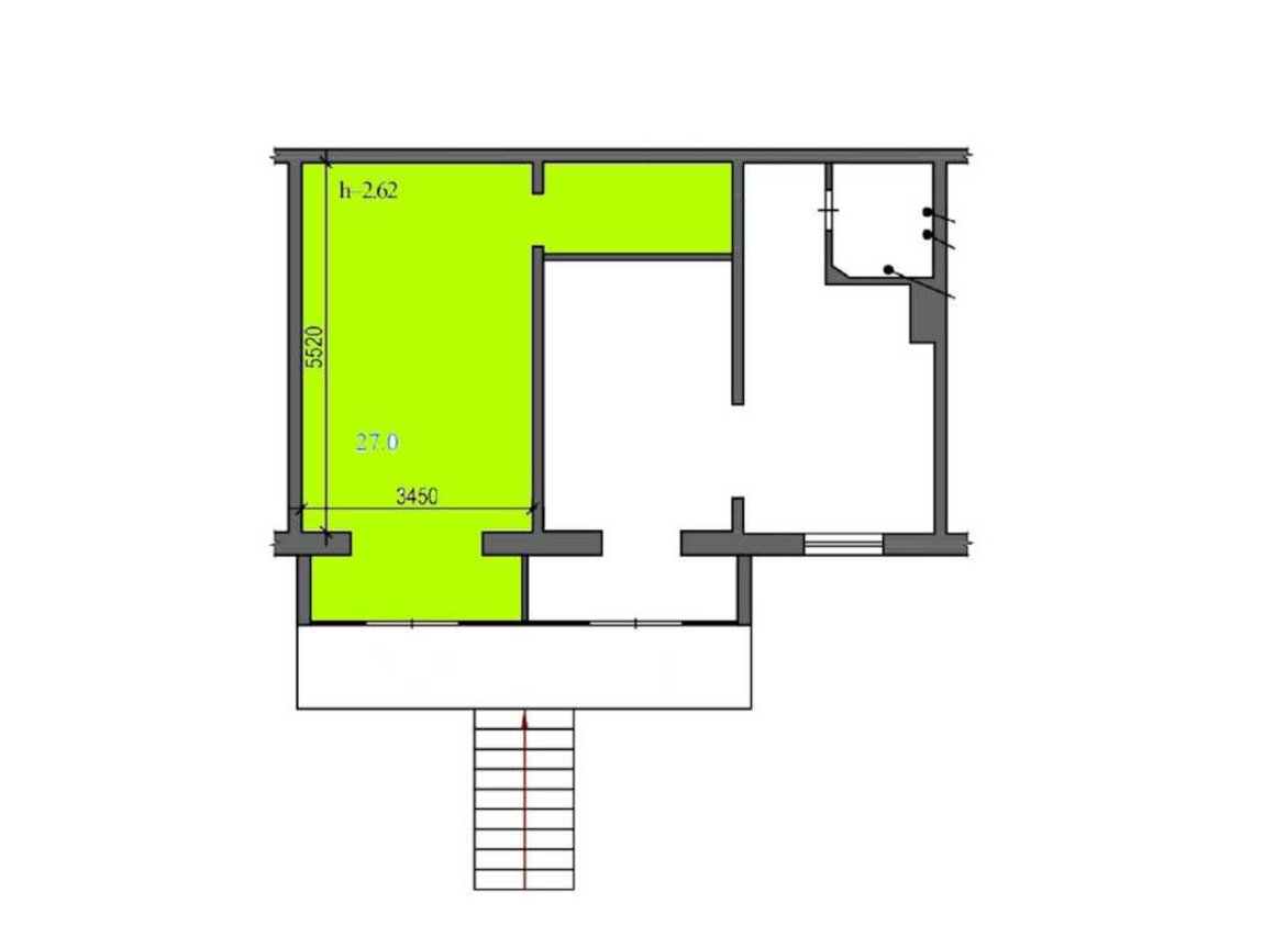 Площа приміщення становить 27 м#178;, ціна продажу $110,000. Розташоване на першому поверсі з фасадним виходом і окремим входом, воно наразі здане в оренду компанії Meest Express, що використовує простір під поштове відділення. Договір оренди діючий, із гарантованою стабільною орендною платою. Висота стелі 2,62 м.