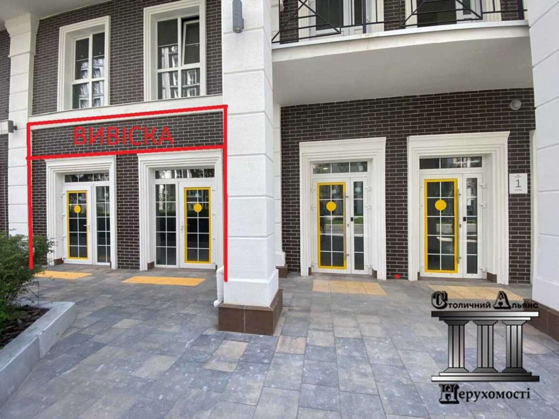 Магазин, приміщення 42,3 кв.м, найцікавіша локація! Приміщеня біля парадного входу будинку на 900 квартир, тому вашу вивіску побачить кожен. Висота стелі Н=3,5 метри, лічильники на воду, електро та тепло (автономна котельня в комплексі). Розташоване в будинку "Віндзор", та дивиться на будинок "Лінкольн". Для гостей та клієнтів безперешкодний доступ на територію, в телеграм каналі онлайн робиться заявка, отримується номер для гостя.
